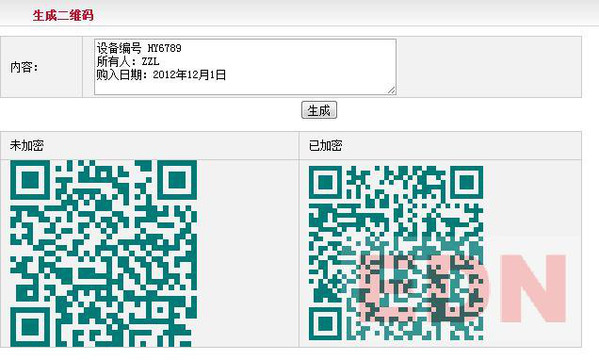 确定生成二维码所有的信息,这里需要确认是否对生成信息进行加密,如果二维码信息中包含设备过多信息,为防止二维码造成的信息泄露,需要对二维码内信息进行加密处理,这样只有在专用终端下才能还原读取码内信息,如果只用设备在机房中的唯一编号生成二维码,则不用考虑二维码信息泄露问题,所以建议只采用编号生成二维码,并配合终端应用。
