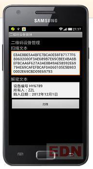 用加了解密程序的扫描终端可以识别到具体内容: